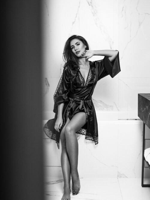Kreminis chalatas su plunksnomis