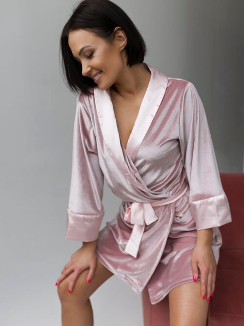 Pelenų rožinės aksominis chalatas